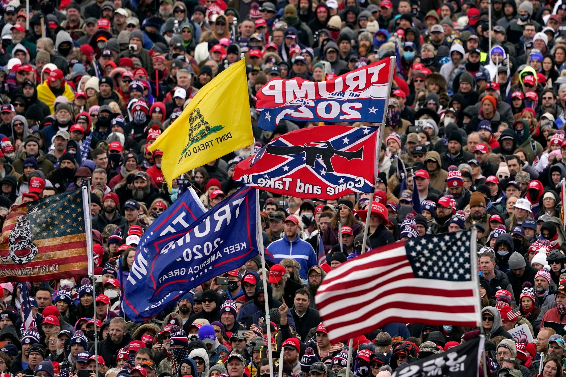 Thomas Webster was carrying a large pole with the iconic scarlet and gold U.S. Marine Corps flag on the end when his image was caught on the body camera of a police officer dispatched to the U.S. Capitol on Jan. 6.